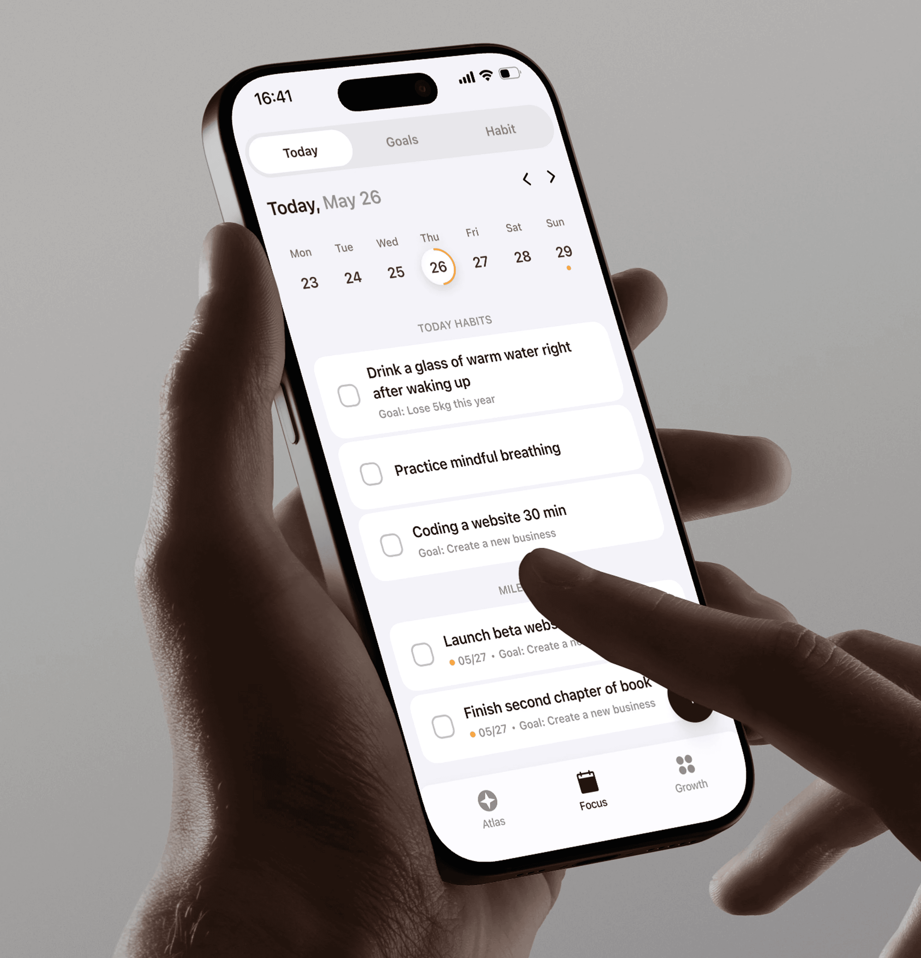 Atlas бол хүний зорилго, зуршил, сэтгэлгээний өгөгдлийг нэгтгэн, хувь хүний өсөлтийг системтэйгээр удирдах AI-powered платформ юм. Олон тусдаа апп ашиглах шаардлагыг арилгаж, хэрэглэгчийн амьдралын урт хугацааны journey-г ойлгож, дасан зохицдог “digital life coach” концепц дээр бүтээгдсэн.
