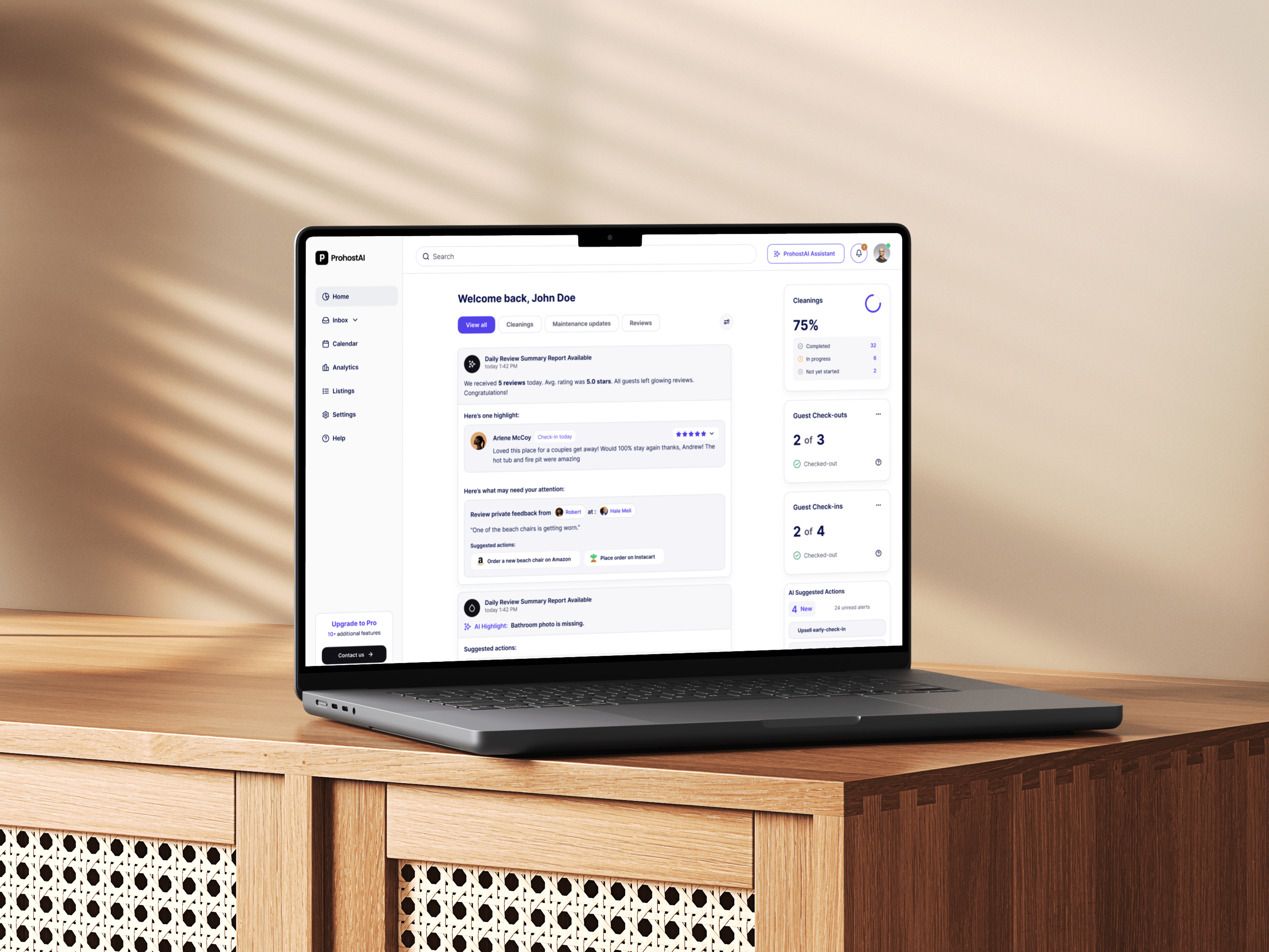 ProhostAI нь Airbnb хостуудын өдөр тутмын ачааллыг бууруулах зорилготой AI автоматжуулалтын систем юм. Зочдын мессеж, захиалга баталгаажуулалт, check-in заавар, түгээмэл асуултууд, review сануулга зэрэг давтагддаг процессыг ухаалаг workflow-оор автоматжуулна. Ингэснээр хостууд гар ажиллагаанаас салж, илүү тогтвортой, масштаблагдах бизнес бий болгох боломжтой болно.